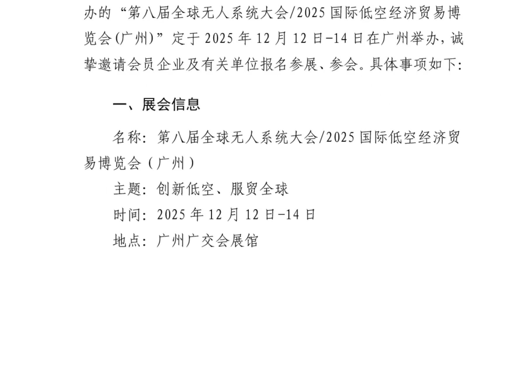 > 关于邀请参加第八届全球无人系统大会/ 2025 国际低空经济贸易博览会(广州)的通知